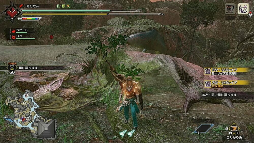 前回のヌシ・アオアシラよりは基準点が見つかりやすいので目測はしやすい部類と思います。