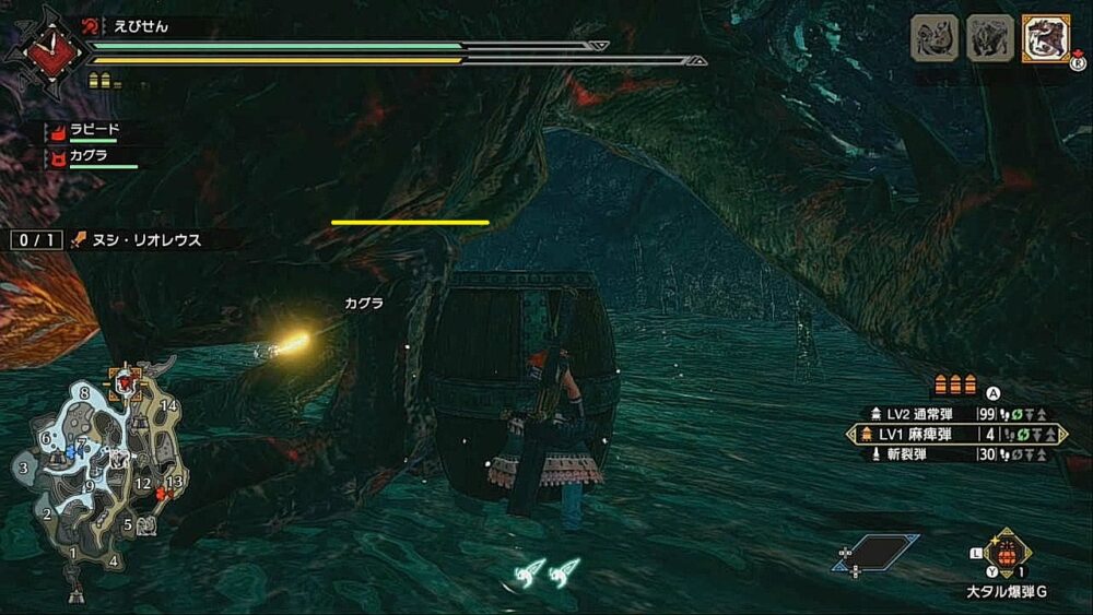 他のヌシモンスターと同じく、罠にかからないのが面倒ですが、麻痺弾で麻痺らせて厳選するようにしましょう。