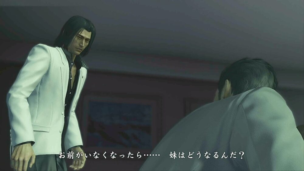 兄貴分である真島の兄さんに喧嘩を売ってしまう形になりましたが、桐生さんらしく度胸のあるシーンでした。
