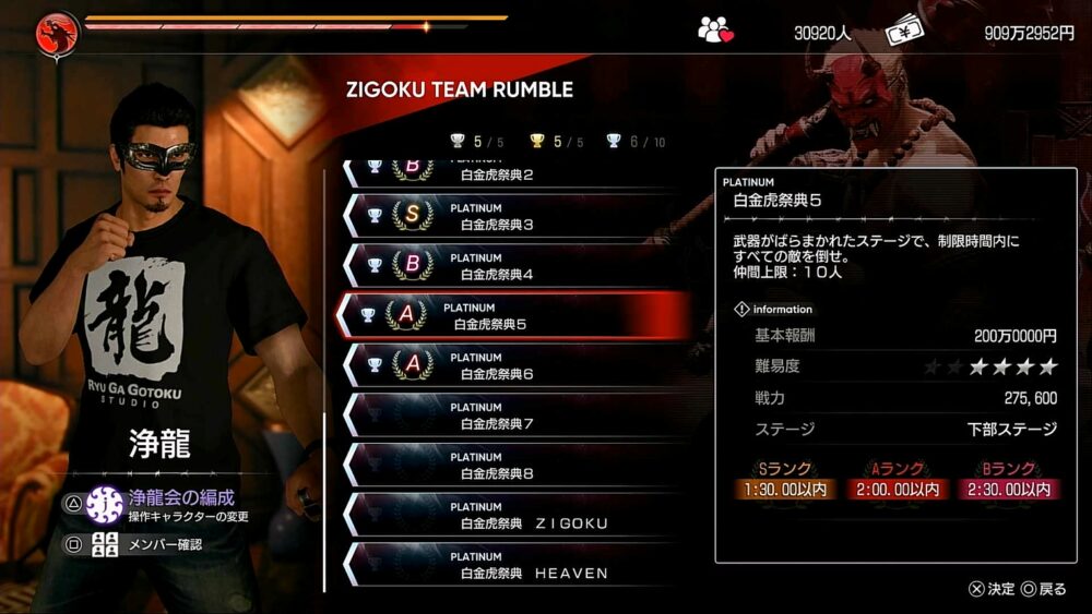 龍が如く7外伝のキャッスルで、高難度の地獄チームランブルが苦戦している、負ける、勝てないという方向けに簡単な方法を書いていきます。